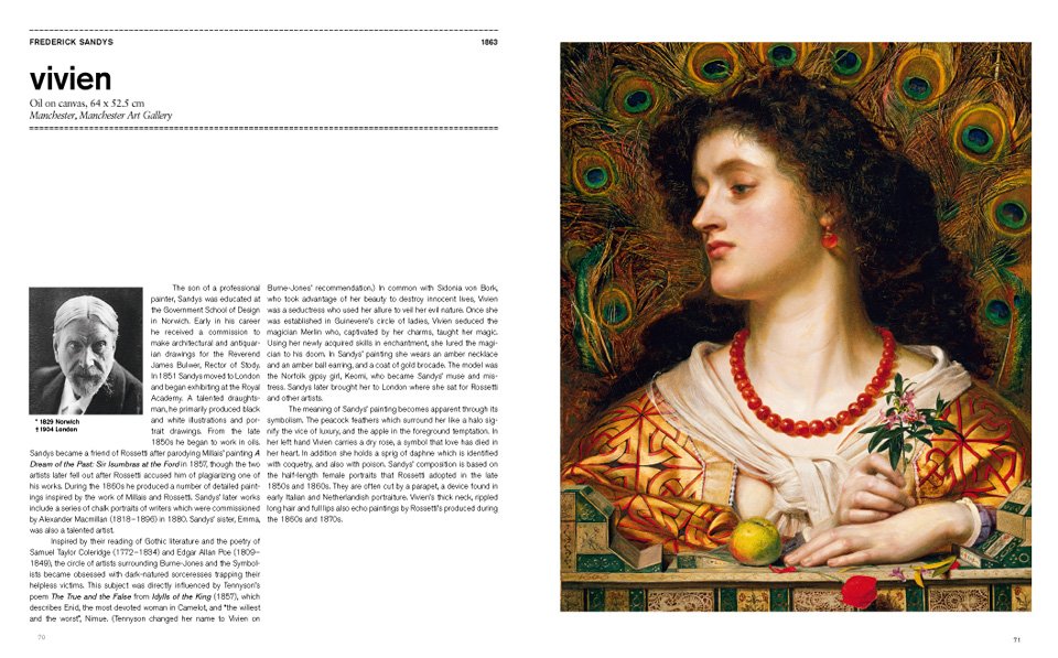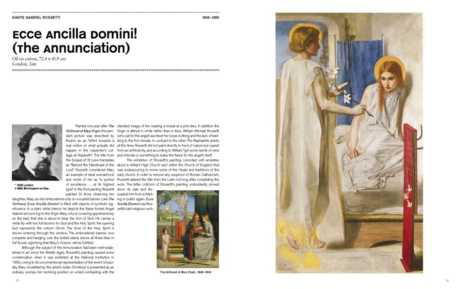 "Genuine ideas to express" Sometimes considered the first avant-garde art movement, the Pre-Raphaelites rejected their era's dominant artistic theories for what they saw as a more spiritual, naturalistic and intensely personal approach. Fascinated by the romantic aspects of medieval culture and the vivid, jewel-like colors of Quattrocento art, the movement abhored the Classical poses and composition of Raphael and those influenced by him—hence the group's name—and the influence of Sir Joshua Reynolds. Founded in 1848 by William Holman Hunt, John Everett Millais and Dante Gabriel Rossetti, the original Pre-Raphaelites were joined by William Michael Rossetti, James Collinson, Frederic George Stephens and Thomas Woolner to form a seven-member "brotherhood". Its influence on many later British artists was extensive, and Rossetti's work is now seen as a precursor of the wider European Symbolist movement. This book examines the group's emergence, development, influence, and subsequent demise. |