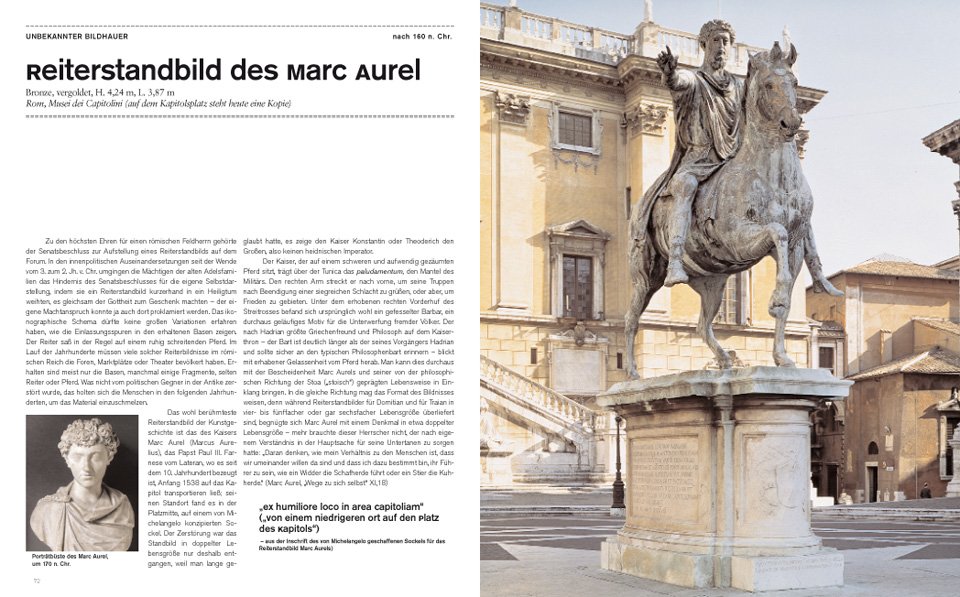 Out of the shadows: art and architecture of ancient Rome For a long time, Roman art was somewhat overshadowed by the art of ancient Greece. It was only in about 1900 that a search began for ancient Roman art and architecture. The foundations of Roman imagery were laid in the early days of the Empire under Emperor Augustus. The imperial court and the imperial family were role models for artistic style, taste and fashion—trendsetters, so to speak, which imperial society was obliged to follow. It was at court that the "new" took shape, pieced together from the vocabulary of Greek originals, copies and imitations as well as new creations, but fulfilling entirely new functions and expressing new meanings. The portrait of the ruler and the so-called state reliefs, which enhanced and embroidered real events, by depicting gods for example, had a particular influence in the shaping of the imagery. Using classical stylistic means, Roman art was able to fulfill all the desires and ideas of its patrons for more than two centuries. |